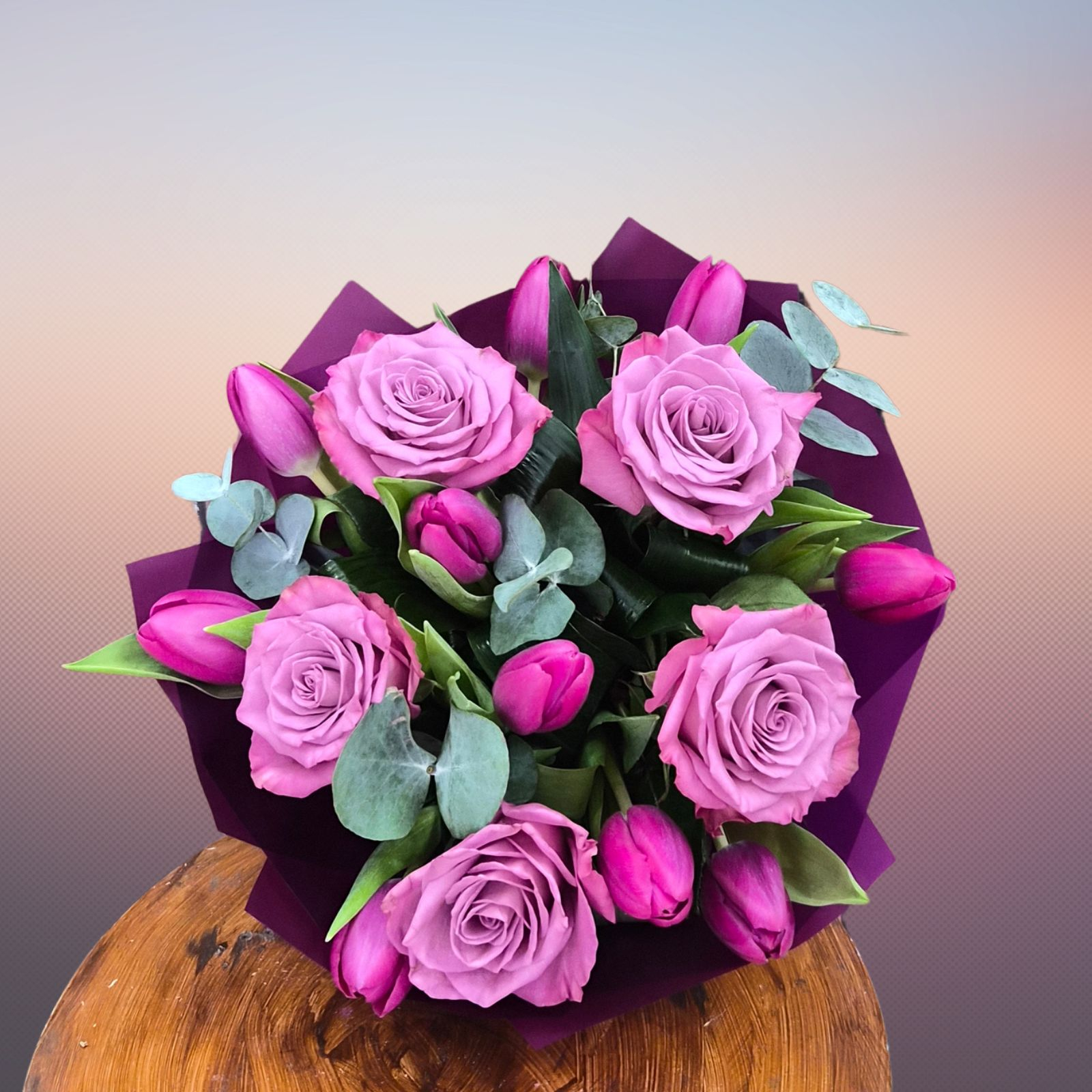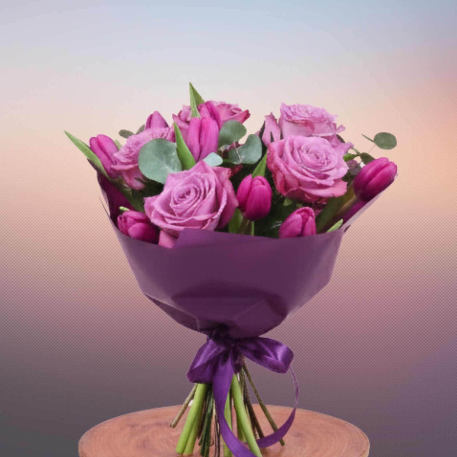 Descoperă un amestec sofisticat de texturi și culori, creat special pentru a impresiona prin rafinament și prospețime. Acest buchet este o odă adusă feminității, combinând fragilitatea lalelelor cu eleganța atemporală a trandafirilor.