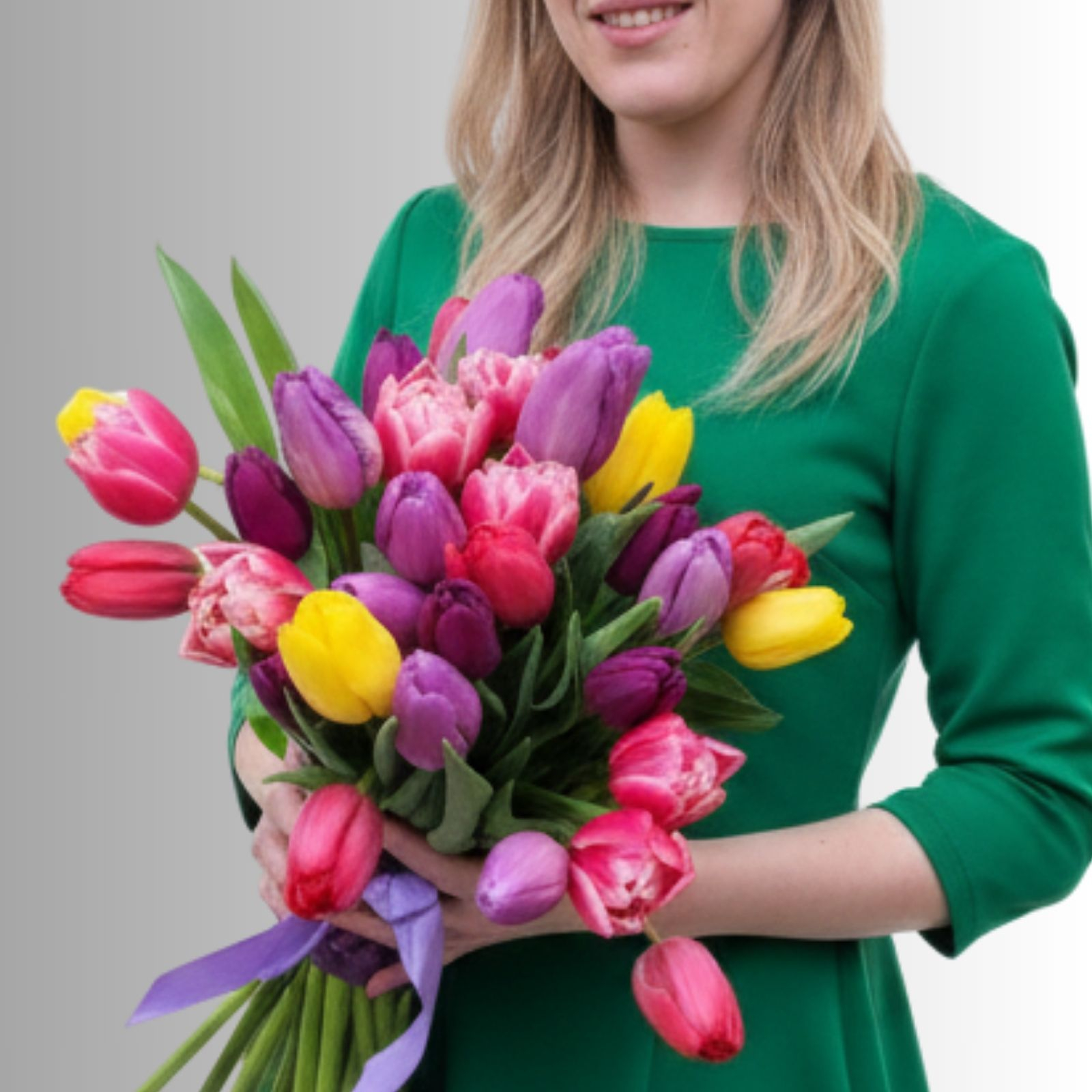 Buchetul conține 35 de lalele colorate, buchetul poate diferi cromatic în funcție de disponibilitate,